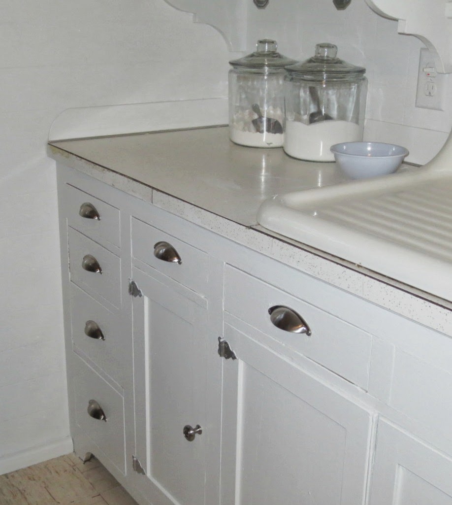 The new hardware is from Lowes. I suppose the old hardware would have sufficed but the knobs were stripped and kept falling off...A REAL PAIN...and the drawer pulls were fine but very utilitarian so I went with something that I feel looks more suited to this old house...BIN PULLS...
